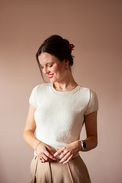 **Construction:** the Calm Down Tee is worked seamlessly from the top down using a saddle shoulder / set-in sleeve construction.