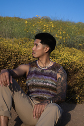 The Jordan Tank is a lightweight, textured tank that’s perfectly geared for warm weather. Featuring a slightly mesh but opaque design, the casual fit & style of this tank will flatter anyone’s body. It’s crocheted with a lovely textured stitch for a modern aesthetic, and shaping to create a scoop-neckline.