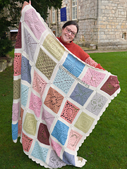 The yarn in the blanket pictured is no longer available but there are two yarn packs available for this blanket linked in the pattern. This blanket is suitable for mini skeins and sock yarn advents. The pattern includes guidance on adapting the pattern to any size yarn.