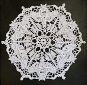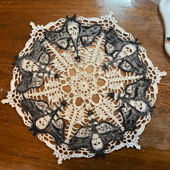 This is a hand crafted crochet lace doily that you can create. If you like skulls and are fond of the "Death's-head Hawkmoth" you can have them in the beautiful doily way. It is a unique and great little piece to add to your home.