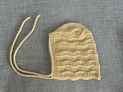This bonnet has two versions: one with wavy garter stitch sections and another with straight garter stitch sections.