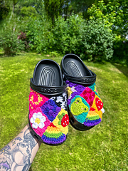 These crochet croc covers will help bring back some life into your crocs!! Giving them a fun and vibrant look !! Perfect for Spring/Summer !!