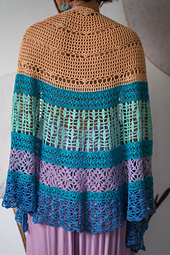One of my favorite times of the year is in early Spring when the sun is shining in a clear, blue sky, and I notice the flowers beginning to awaken. Those days are a reminder of the continuous opportunities to change our path and grow into a better version of ourselves. Wishing to evoke that same hopeful sense of renewal, I chose lacy crochet stitches that are worked in bright colors for this shawl. Choose any colors that bring you joy!