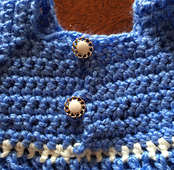 The dress is worked from the top down, raglan style. The top has a button back. It is joined at the waist and the skirt is worked in the round. Directions are given for 2 different skirts