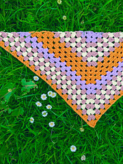 The Cruel Summer Bandana is a quick and easy stash busting accessory inspired by THAT Taylor Swift crochet dress. This cute headscarf is made up of one granny half square, with colour change stripes to match the original dress, and simple ties added at the end. You can use any four shades of 4ply cotton yarn for this pattern.