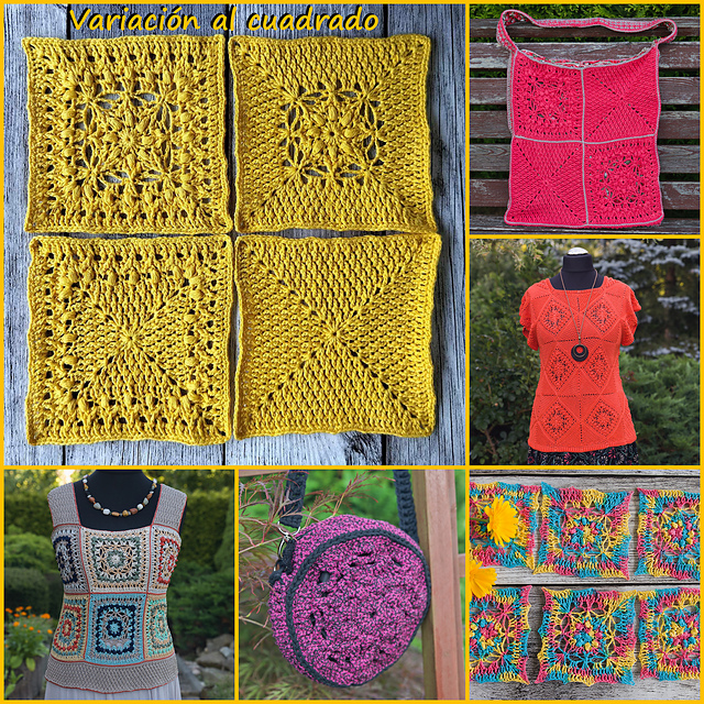 Tops, bags and other things that you can see on photos are only used as inspirations what you can create of squares - they are just examples, you can use square to every project you can imagine.