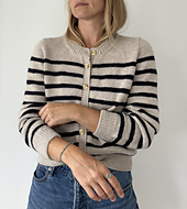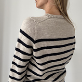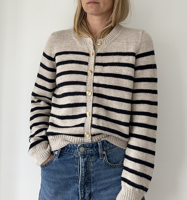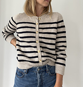 ** Yarn used in the pictures is Arwetta Classic by Filcolana in shade Marzipan 977 (main colour) and Blue Nights 195 (stripes) with 17mm buttons.*