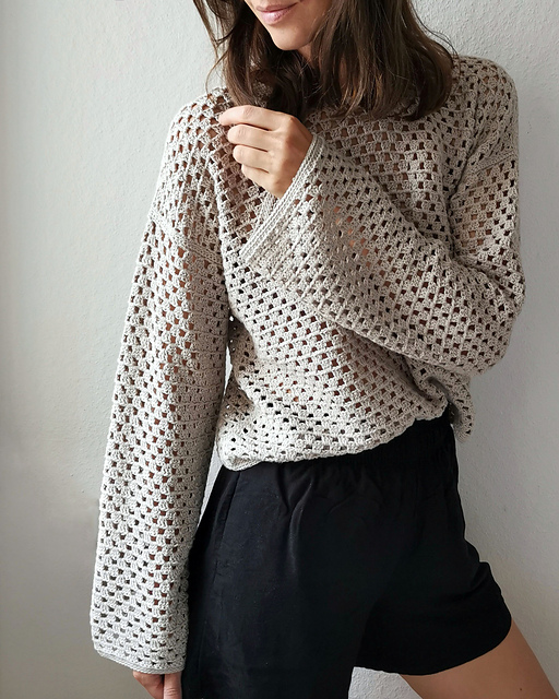 TROPEZ Sweater is a simple boxy-shaped pullover in a mesh pattern. A true summer favorite that can be worn either as an airy topper for another top, or as a beach cover-up over swimwear.