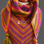 For my personal shawl, I used 6 balls of Lion Brand Landscapes in “Coral Reef” with a 6.5mm Hook