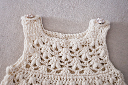 The romper is worked separately for back and front, then the bottom part is worked in rounds and separated for leg holes. It’s completely seamless.