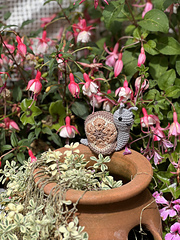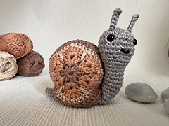 The finished snail, when worked in 4ply yarn, will measure approximately 3" (7cm) nose to tail, and is 3" (7cm) high. This will of course vary with weights of yarn and hook/tension. For a larger Snail work in double knit, aran or chunky.