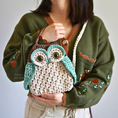 Pattern info page: https://www.sweetsofties.com/2024/07/mountain-owl-bag.html