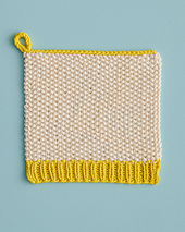 - 2 of Purl Soho’s [Cotton Chirp DK Mini Bundles][2], 100% Peruvian Pima cotton. Each bundle includes four 58 yard/ 25-gram balls; approximately 55 total yards required per washcloth: approximately 40 yards for the Main Color and 15 yards for the Contrast Color.