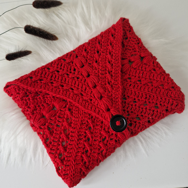 You can use 1,2,3 or more colours for this or even variegated yarn! Work in the round to form a square then join to form a sleeve and attach a closure!