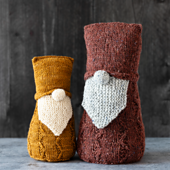 Like all gnomes in this book, Gnarley is shown in both fingering and DK weight yarn. Gauge, needle information, height, and yardage details are provided for both in the book. Check out the "Chart of Everything" in the photos.