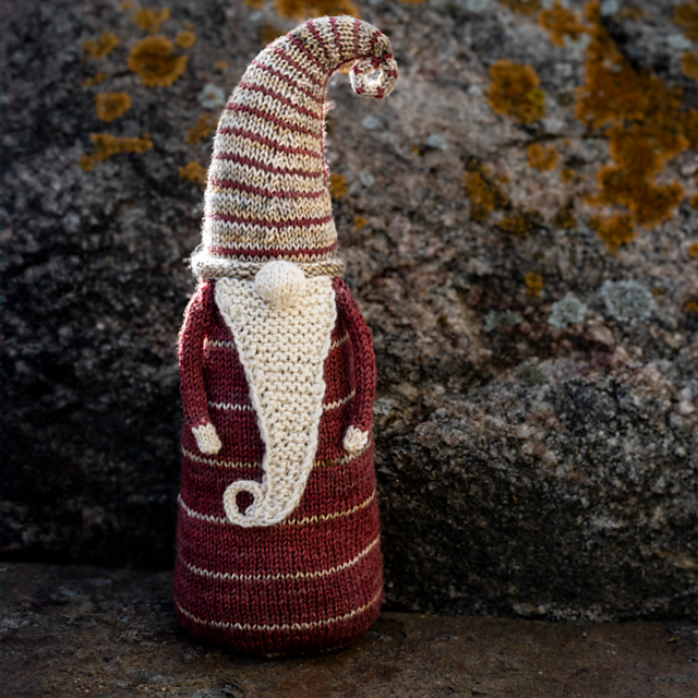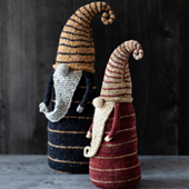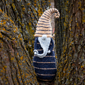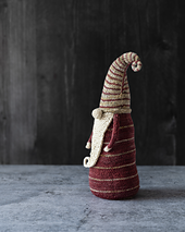 Like all gnomes in this book, Gnolan is shown in both fingering and DK weight yarn. Gauge, needle information, height, and yardage details are provided for both in the book. Check out the "Chart of Everything" in the photos.
