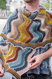 *This large shawl is knitted with nine colors of West Wool Bicycle and one lace weight mohair pop for the little eyelet stripes. The woolly waves are knitted with short rows to form the arched shape. Increases and decreases create undulating waves, resulting in a spectacular radiating effect. This project is so exciting to knit using your single skeins or leftover fingering weight yarns from other projects. The mohair contrast color adds a liquifying drape to the fabric and a subtle halo. Create your own unique color story and enjoy this magnificent Westknits shawl!*