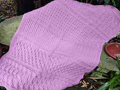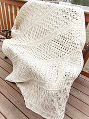 A fun cable blanket with different stitch patterns to add some interest to a blanket. There are 5 different sections with different cable patterns with dividers in between the sections.