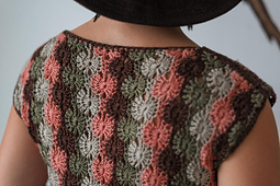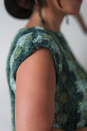 Banda is a tee that is made entirely in the beautiful Catherine's Wheel stitch. Simple chains, single crochets, and double crochets work together to form wheels in a lovely, striping pattern. These simple stitches make this a perfect project for the beginner who is looking to expand their handmade wardrobe. The loose, flowy stitches mean this tee can be worn any time of year, including summer.