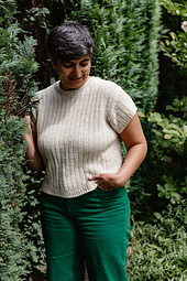 The Lunan Tee is a top-down, drop-shouldered tshirt with options for either a round-neck or a polo neck, and gauges for both 4ply and DK.