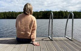 **Garn:** En tråd Tynn Peer Gynt fra Sandnes Garn (50 g = ca 205 m) strikkes sammen med to tråder Tynn Silk Mohair fra Sandnes Garn (25 g = 210 m).