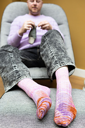 *Choose three colors of fingering weight sock yarn and fade them together for this textured sock. This pattern is knit top-down with an easy-to-knit knit & purl motif. The instructions include notes to help you fade three colorways together, but feel free to use as many shades as you like. Video links are included to help you cast on, work the heel flap, and bind off with the Kitchener stitch technique. Enjoy this simple relaxing sock project as your beautiful hand-dyed colors shine!*