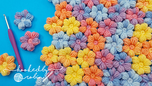 Learn how to crochet these adorable puff flower motifs and how to crochet them together AS YOU GO - no sewing here!