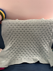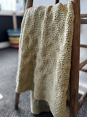 When meeting gauge and working all rows in the pattern, the blanket measures 80 cm or 31.5" across the top and 106 cm or 42" in length.