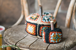 All pumpkins are made with the same granny square which is included in the pattern. Also included are instructions for making 3 different layouts of pumpkins.