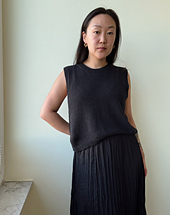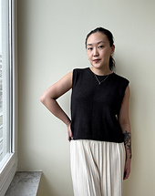 Montpellier Top is worked from the top down with ribbing down the sides. First you work the back and front sections one at a time. The top of the back is worked flat before picking up stitches on either side to create the shoulders and the neckline. Then the front section is worked flat, before the front and back sections are joined, and the body is worked in the round on the same needle. The body is finished with ribbing and, finally, stitches are picked up along the neckline to create the neckband.