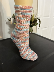 If you have a higher instep, or would like to have more room in the instep, you can consider going up a hook size for the heel and first 4 rounds of the heel decreases, then go back to the hook you were using for the foot. Also, a sock yarn that has more stretch to it will give a bit of extra room.