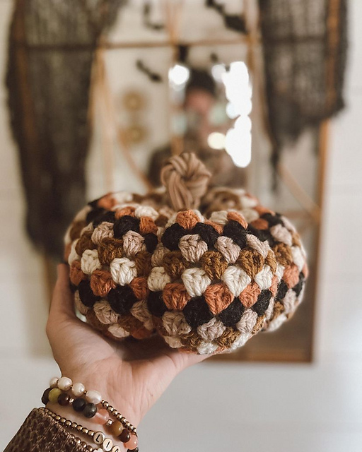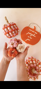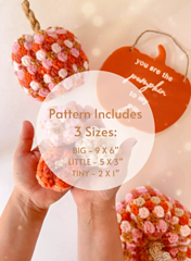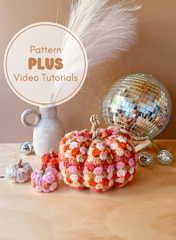The pattern includes 3 sizes of pumpkins, with options to make each size tall or short as well. Step by step photos & video tutorials are also included to help you along the way.