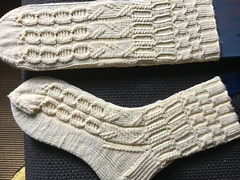 **MATERIALS:** Unless perhaps you are knitting socks with very long feet, a standard 100 gm/440 yard skein of sock yarn will be sufficient to knit these socks.