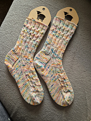 **GAUGE:** These socks should be knit at the correct gauge to assure a good fit. Apparently, I'm a tight knitter and need to use 2.75mm needles to get that gauge. Please avoid sorrow, gnashing of teeth, and a trip to the frog pond by using the correct size of needles that will give YOU the right gauge.