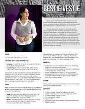 Spice up your wardrobe with this cute yet cozy and refined vest! The Bestie Vestie is knit seamlessly from the bottom up using either one strand each of DK and lace weight yarn held together or a worsted weight yarn on its own.
