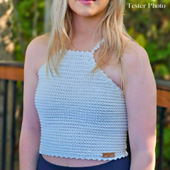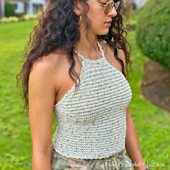 **Introducing the Milan Halter Top**—a beautiful, sleeveless summer crop top that's as delightful to create as it is to wear. With its elegant criss-cross back, this top adds a touch of sophistication to any casual look.