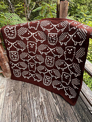 Yarn usage*: 1 repeat ± 500 meters dark, 600 meters light. Per extra repeat 375 meters dark, 425 meters light extra. (Note, if you add a repeat in width and height, that's a total of 4 repeats)
