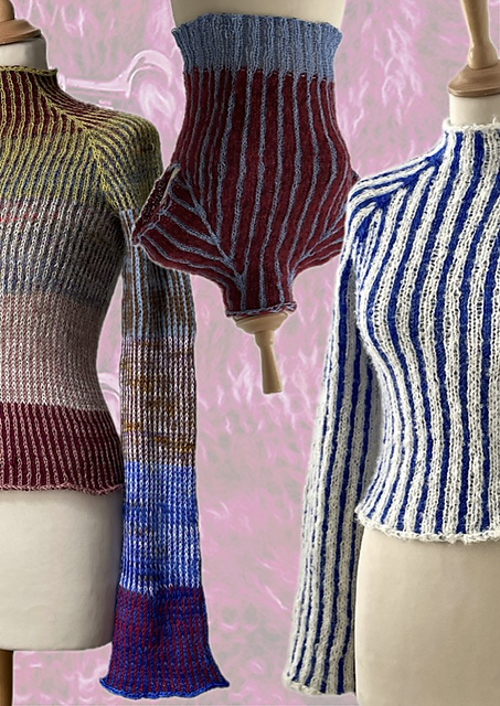 over the head. I have tested many different types of yarn and made my selections based on which colors match well and the thickness of the threads. I do not recommend using yarn heavier than bulky, as the frequent color changes create an “extra layer,” which can make the sweater too warm to wear.