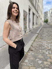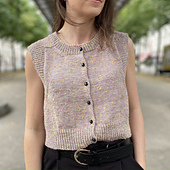 **Laine** : le gilet sans manches se tricote avec un fil de d’épaisseur DK.