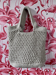 **Construction:** This bag is crocheted from the bottom-up in joined rounds. You will begin with the base, increasing each round by 6 stitches. Once the proper bag circumference is reached, you will crochet straight for several rounds without any shaping. Next, you will crochet the textured panel that makes up the body of the bag. Two sections of this textured panel will be extended on either side of the bag, providing shaping to the handle area. Lastly, you will crochet the handles.