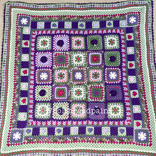 The blanket measures 50" x 50" and takes 16 x 100g balls of premium acrylic DK yarn. Hook size 4mm. The full Yarn List is included in the pattern, plus links to where to buy the Yarn Pack.