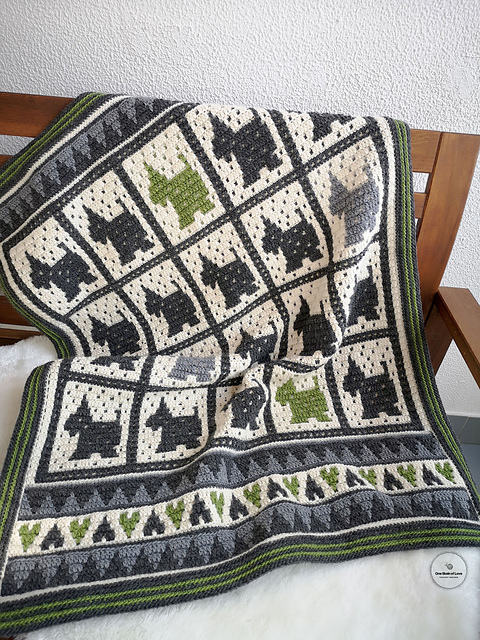 «Wags & Wiggles» is done using **mosaic overlay** technique. If you want to give it a special touch you can use some **mosaic tapestry** too. The pattern has step by step pics to guide through mosaic tapestry and you can also follow my videos on my [YouTube channel][1] about this technique.