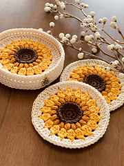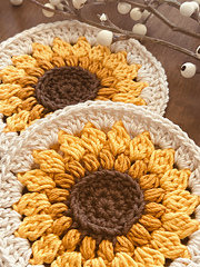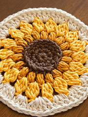 The Golden Sunflower coaster pattern boasts nature’s brilliant colors in cheery goldenrod and majestic yellow. The flower is set in a neutral ivory background to easily match one’s home decor and style. A delightful charm is optional and can easily be personalized based on your preferences. The design allows you to give the beautiful gift of flowers for many occasions.