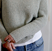*My first [birthday sweater][1] has grown with wearing, so I 'needed' another one :) Of course I took the opportunity of a re-design. The broad and beautiful raglan lines are just a little bit smaller and they are now floating into a shifting front, the neckline is shaped with short rows. To calculate the growing of the Half fisherman's rib there is now a pre-blocking and after-blocking gauge on a much smaller needle size. I still love my Birthday sweater, the BiRTHDAY61 just has grown up a little :)*