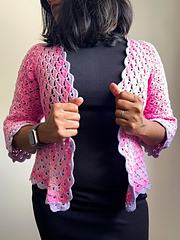 @chszabadkai I absolutely love the look of the shells and the way the top is crocheted. Two parts, crochet together. Great design for top and also for a cardigan (when the front pieces aren't crocheted together).