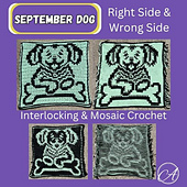 September Dog is our ninth pattern in the [2024: A Year of Dogs](/patterns/sources/2024-a-year-of-dogs) series. This large square shows a dog leaning on a large bone. Each month's design can be made using interlocking crochet or overlay mosaic crochet.