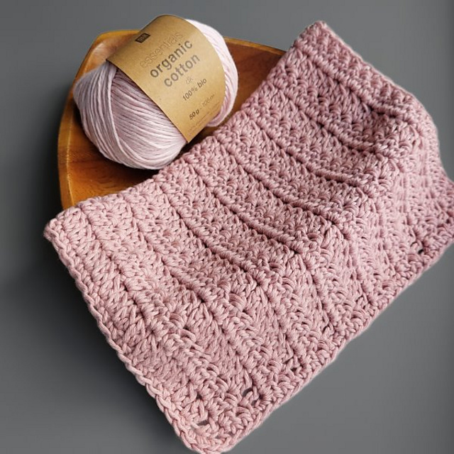 Sized as an 8” x 8” (20.3cm x 20.3cm) square, and is easily adapted for other sizes should you want a bigger/smaller facecloth. It also includes an optional border.
