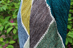 Easy garter stitch sections separated by simple eyelets combine to make a versatile wrap.