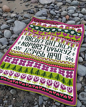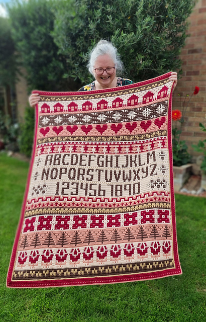 Inspired by Cross Stitch samplers, Lakenham was designed as a 6-part CAL, worked using overlay mosaic crochet, and finished off with a simple envelope border to hide the loose ends.