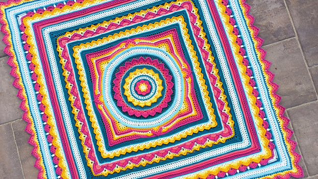 The Theia Afghan, a floral, mandala-style blanket is sure to be a statement piece in any room. With lots of interesting stitches and techniques, it's wonderful for those who enjoy more intricate, involved projects.